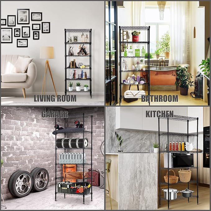 - 【Large Storage Space】This wire shelving unit comes with 6 level of shelves which can provide additional storage without taking up too much space in your home. Solve your shelving troubles, say goodbye to clutter, and meet the beauty of each day with a neat and tidy look.