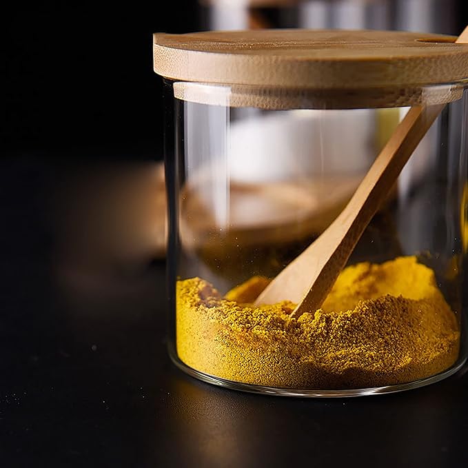 - Premium Material: Clear seasoning jar is made of bamboo and high borosilicate glass.