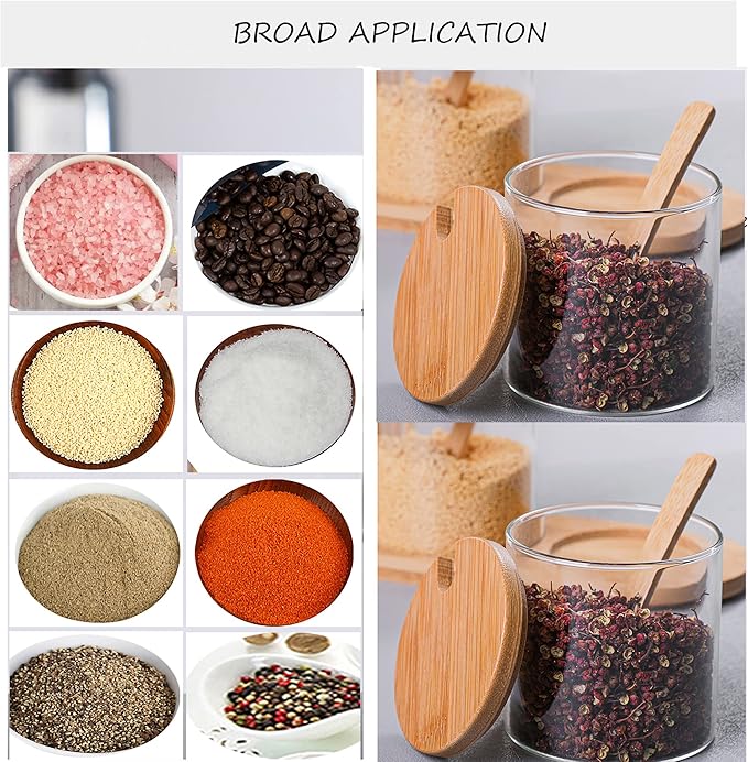 - Grooved Lid: The bamboo lid of the condiment box is made with a notch design, which is easy to store the spoon and convenient for you to use the bamboo spoon to dig out the right amount of seasoning at any time.