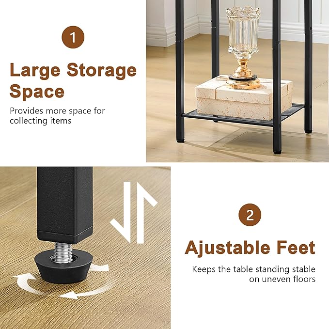 - 【More Practical】The 3-tier storage table can feed all your different needs. The open smooth shelves at the top and middle give you enough storage space for storage and display. The side table have enough space to store your TV remote control and other small things. You can just have a cup of coffee or tea and enjoy a short relaxation. "