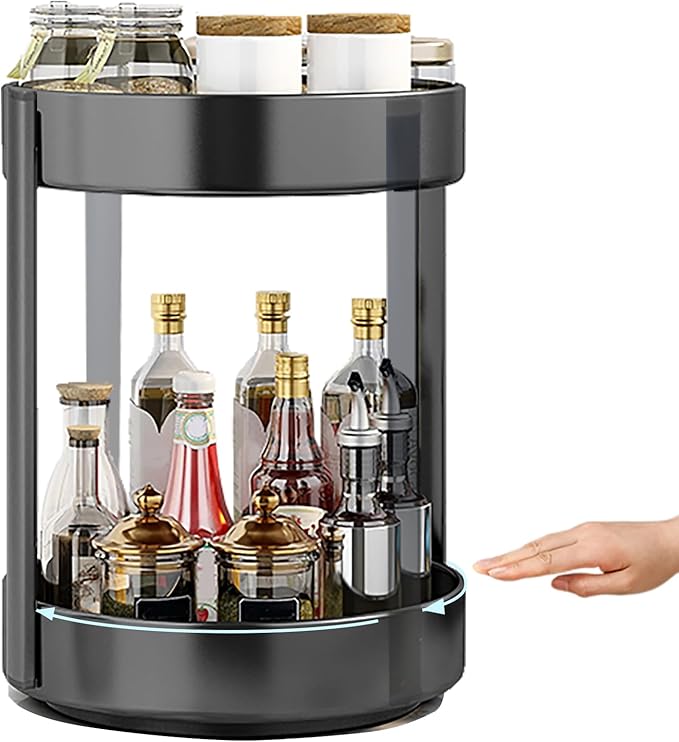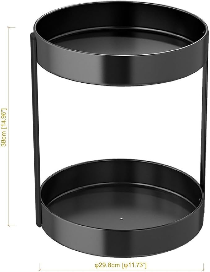 2T Large Plus Rotating Spice Rack Organizer Lazy Susan for Turntable Cabinet Kitchen 2 Tiered Spinning Storage Rack Shelf Black Metal