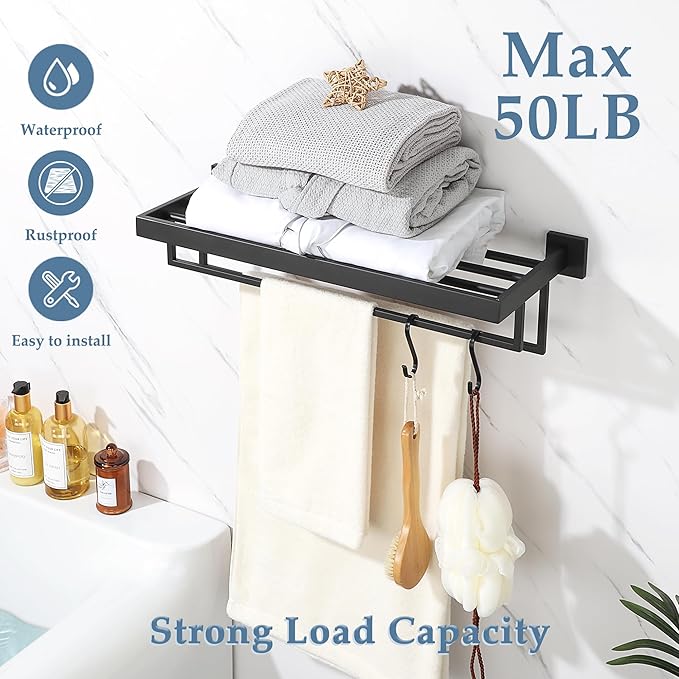 - 【LARGE STORAGE SPACE】 24 inch towel rack with wider and thicker design, enough space at the top for storing bath towels bathrobes and so on, with a maximum carrying capacity of 60 pounds; The towel rack makes your bathroom look clean and tidy, and saves you a lot of space.