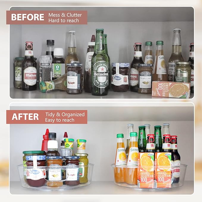 - Safety & High Quality - This lazy susan cabinet organizer is made of premium durable PE and BPA-free, very fall resistant, offering a long-term durability and safety for food, which is easy to clean with mild soap and water. NOTE: DON'T PUT IT IN DISHWASHER