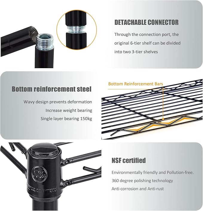 - 【Sturdy and Durable】Our storage shelves is made of heavy-duty steel wire.Durable enough and not easy to accumulate dirt and corrosion. Each shelf can support a weight capacity of up to 150lbs with a maximum weight capacity of 750lbs for entire unit. It can meet most storage and all home storage needs.