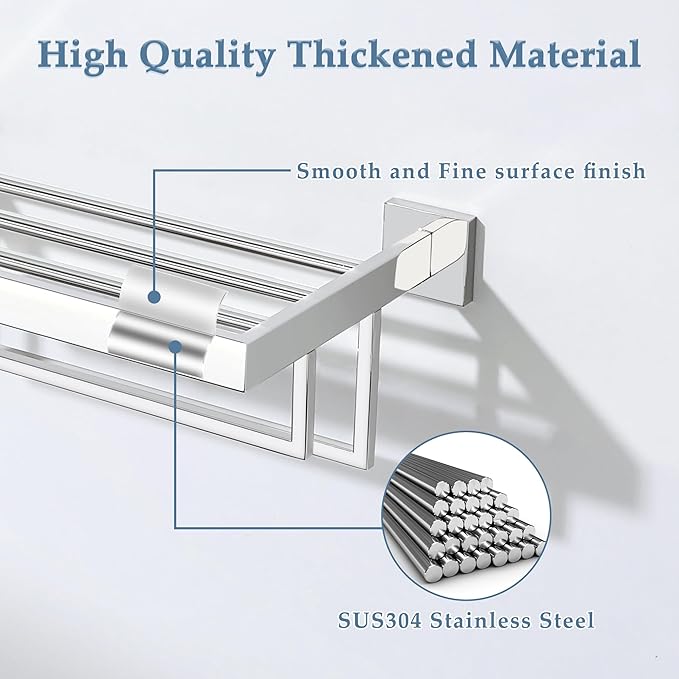 - 【STAINLESS STEEL MATERIAL】 The towel racks for bathroom is made of high quality SUS 304 stainless steel material, which has excellent corrosion resistance, also able to withstand greater pressure and impact, not easy to break.
