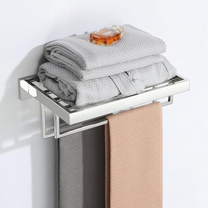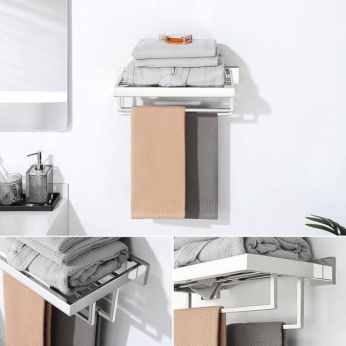 Alise 16 Inch Towel Racks for Bathroom, Towel Rack Wall Mounted with Double Towel Bars, SUS 304 Stainless Steel Towel Shelf, Heavy Duty Hand Towel Holder(Polished Chrome)