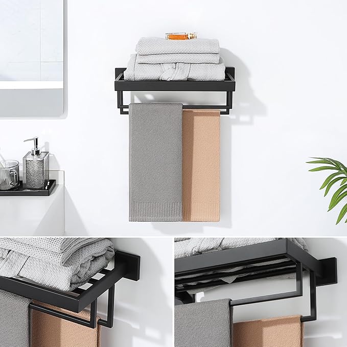 Alise 16 Inch Towel Racks for Bathroom, Towel Rack Wall Mounted with Double Towel Bars, SUS 304 Stainless Steel Towel Shelf, Heavy Duty Hand Towel Holder(Matte Black)