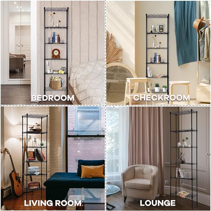 - 【Adjustable Wire Shelving】It is very easy to assemble the metal shelves within 10 mintues, No tool needed,You can adjust the height of the storage rack according to the size of your stored items, creating a custom unit that best suits your specific needs.