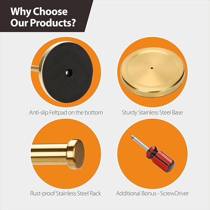 - Weighted Base: Stainless steel heavy-duty base for added stability. Felt pad on the bottom of base prevents scratching to countertop, and allows for added sturdiness and stability to towel rack stand.