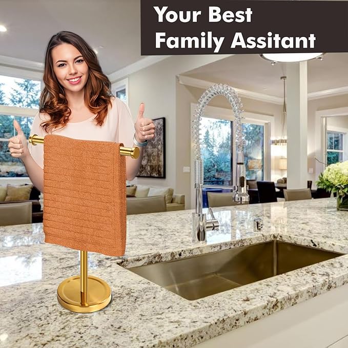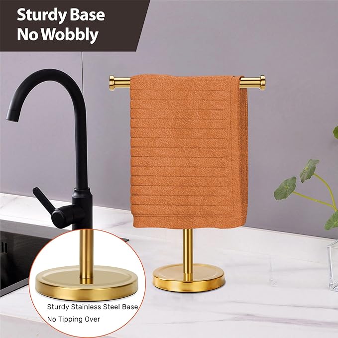 Hand Towel Holder Stand with Heavy Base, Hand Towel Rack for Bathroom (Stainless Steel, Gold Brushed)