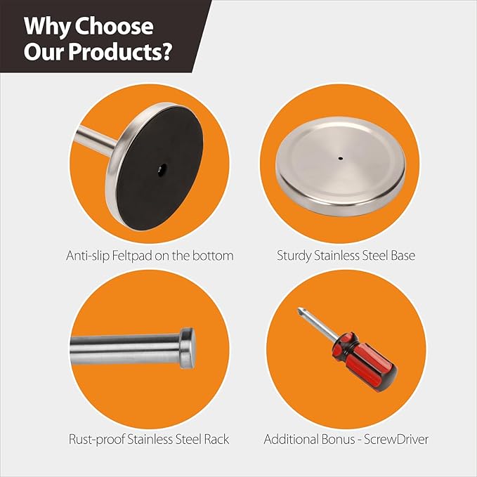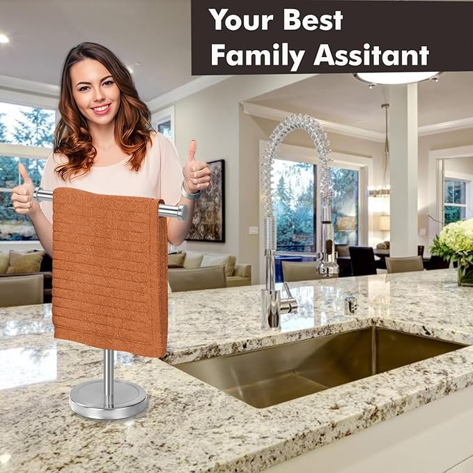 - Weighted Base: Stainless steel heavy-duty base for added stability. Felt pad on the bottom of base prevents scratching to countertop, and allows for added sturdiness and stability to towel rack stand.
