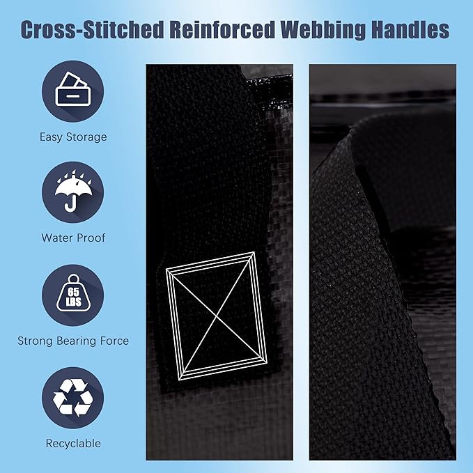 4 Pack Large Strong Moving Bags with Zippers & Carrying Handles - Water-Resistant - Heavy Duty Storage Tote for Space Saving Moving Storage, Fold Flat, Alternative to Moving Box (Black)