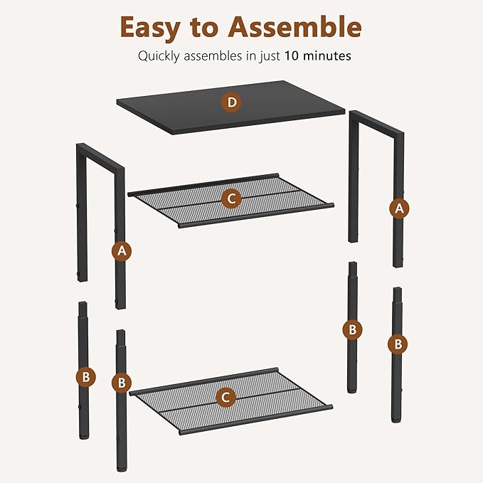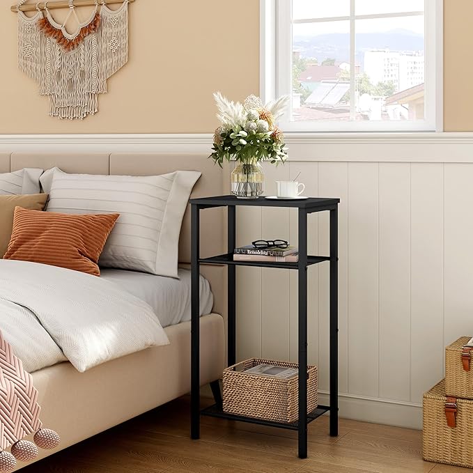 Hoctieon 3 Tier End Table, Telephone Table, Tall Side Table with Storage, Small Nightstand for Small Spaces, Metal Frame, For Living Room, Bedroom, Sofa Couch, Hall, Easy Assembly, Black