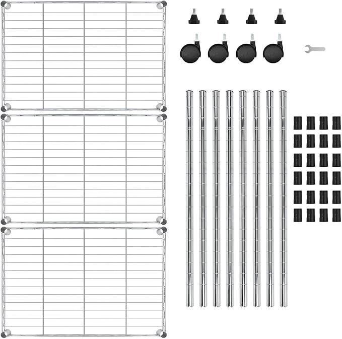 FDW 3 Tier Wire Shelving Metal Storage Shelves 23L x 13W x 32H Layer Storage Shelves with Wheels for Kitchen Garage Small Places,Chrome