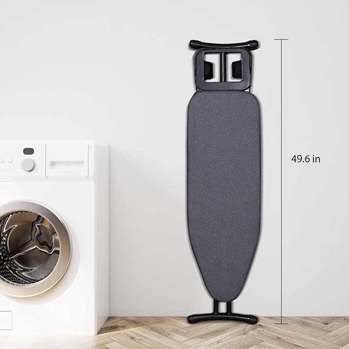 - Lightweight Compact Iron Board:Total 8.22 lbs, it's lightweight, easy to fold and move, much space saving, can directly hang on the ironing board holder or store behind the door