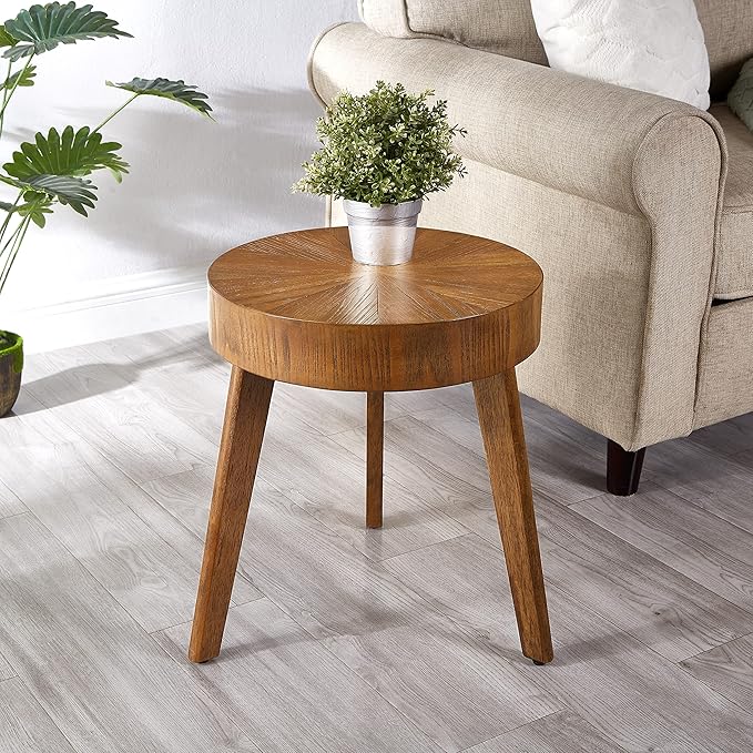 - đ¤ăSolid Wood End Talbe for Living RoomăCrafted from high-quality solid wood, this rustic round end table exudes a timeless charm and exceptional durability. The natural grain patterns and rich texture of the wood make each table unique and visually appealing. Its compact size and rounded shape make it an ideal choice for small spaces, while adding a touch of sophistication to larger rooms.