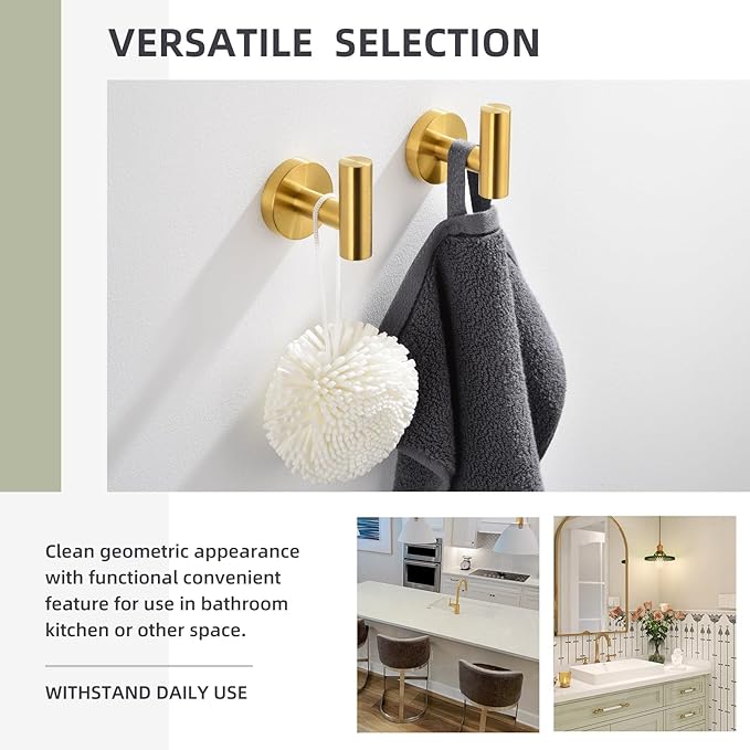 Angle Simple Bathroom Towel Hook 2 PCS, SUS304 Stainless Steel Bath Towel Robe Coat Holder, Heavy Duty Wall Hook, Brushed Gold