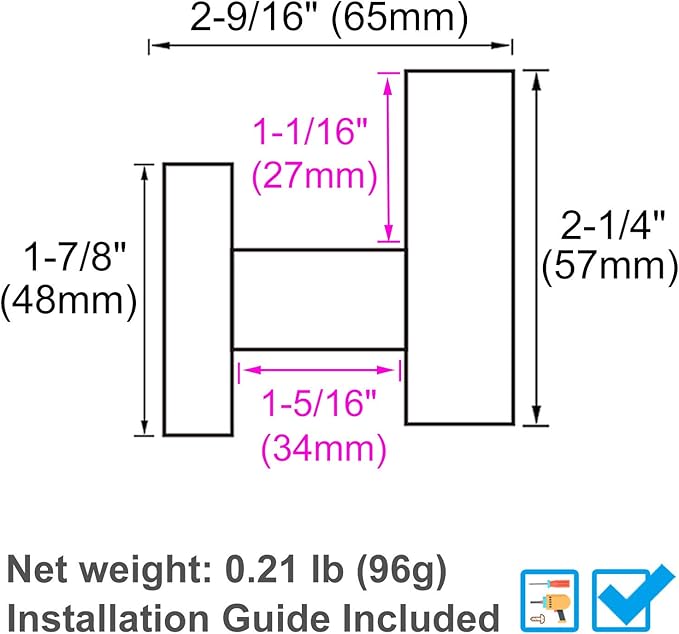 - APPROPRIATE DEPTH: distance between hook and base is 1-5/16"(34mm), leaving enough room for air circulation to dry wet towel faster and hanging some wider objects