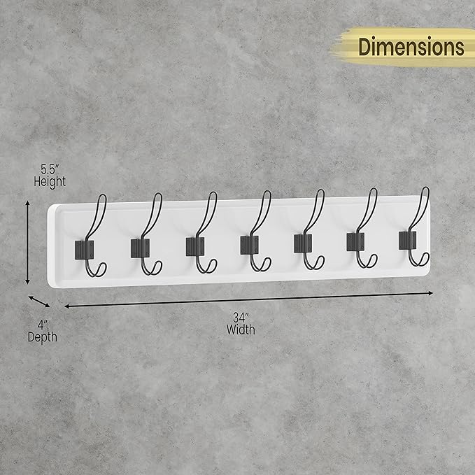 - Wall Mounted Coat Rack: This 34" long solid wood coat rack is equipped with 5 sturdy metal hooks for hanging coats, hats, dog leashes, and more. The perfect addition to your kitchen, mudroom, or bathroom.