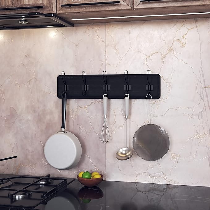 - Wall Mounted Coat Rack: This 24" long solid wood coat rack is equipped with 5 sturdy metal hooks for hanging coats, hats, dog leashes, and more. The perfect addition to your kitchen, mudroom, or bathroom.