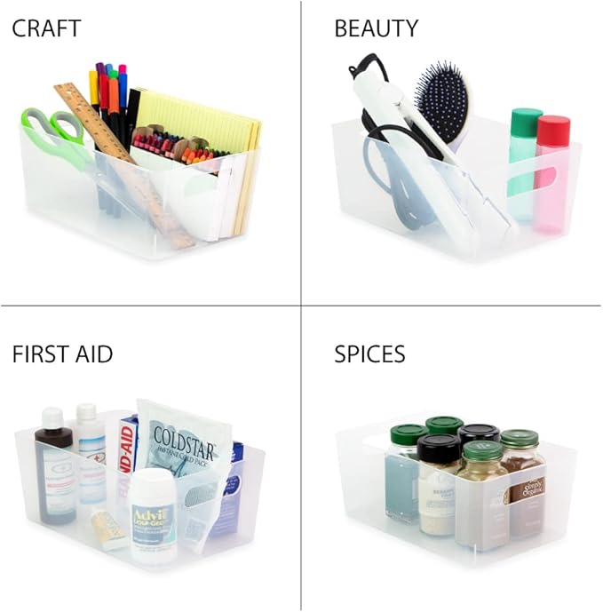 - EASY STORAGE: These portable containers are conveniently designed to hold a wide variety of items and can be used in almost every room in the home, including the refrigerator and the freezer! Ideal for storing food, accessories, beauty products, and cleaning products alike, these bins really can do it all. They have a minimalist design that will make any space look organized and neat without being too flashy.