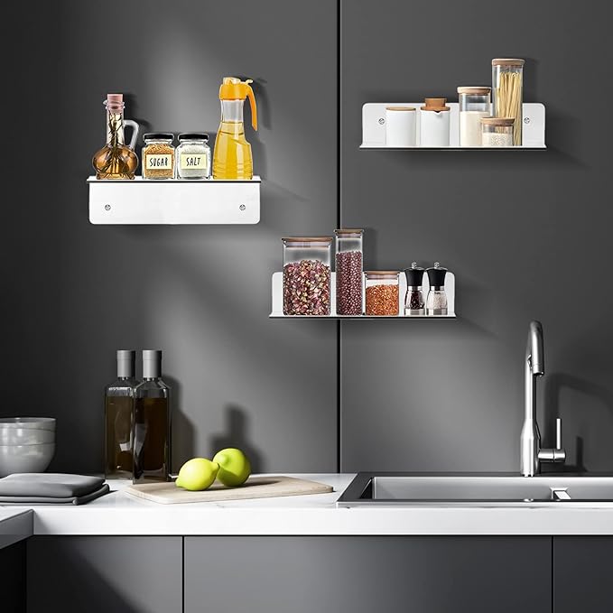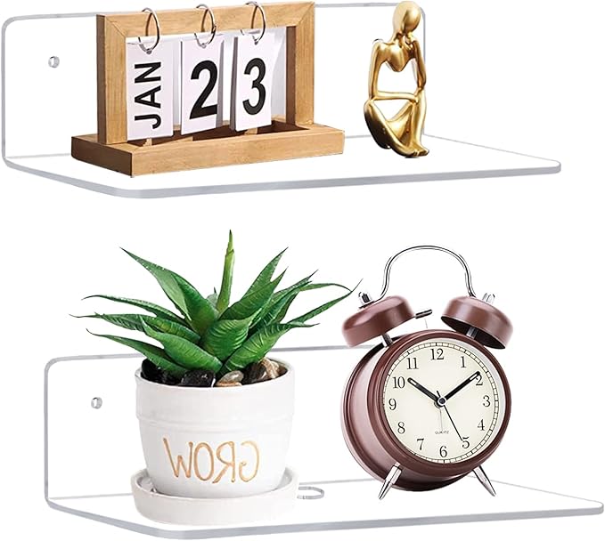 - 【Rugged and durable】: The mini shelf for wall is made of new acrylic material, which does not fade, yellowing or corroded. The corners are polished and are very smooth.