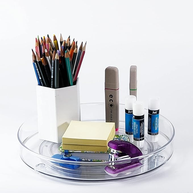 - EASY TO REACH: This Lazy Susan turntable can rotate 360 degrees smoothly, makes items easy to reach even stored in corner cabinets or upper shelves, the deep rim prevent items sliding off while the turntable is spinning, The visible clear and circular design also easily view everything in the turntable
