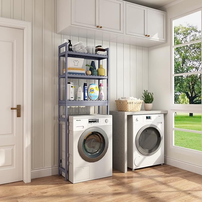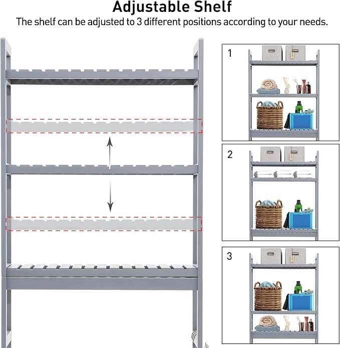 - 【Height Adjustable Shelves】You can adjust the shelf height to accommodate your items, whether they're tall or short. The bottom bar is also adjustable for toilets of different heights. Each shelf can hold a maximum load of 33 lbs.