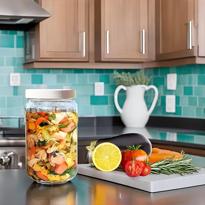 - EXTRA WIDE MOUTH DESIGN – 32oz (1 quart) glass jar features a wide mouth for easy filling, scooping, and cleaning. Perfect for dry goods, liquids, or overnight oats containers with lids.