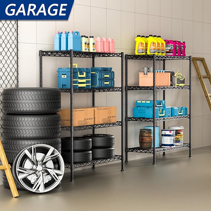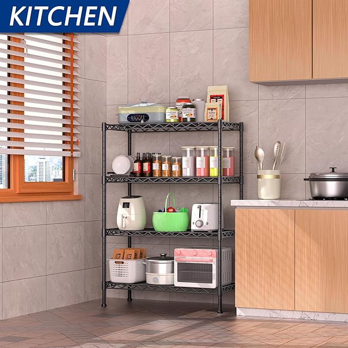 4-Shelf Adjustable Heavy Duty Storage Shelving Unit, Metal Organizer Wire Rack for Laundry Bathroom Kitchen Pantry Closet, Black