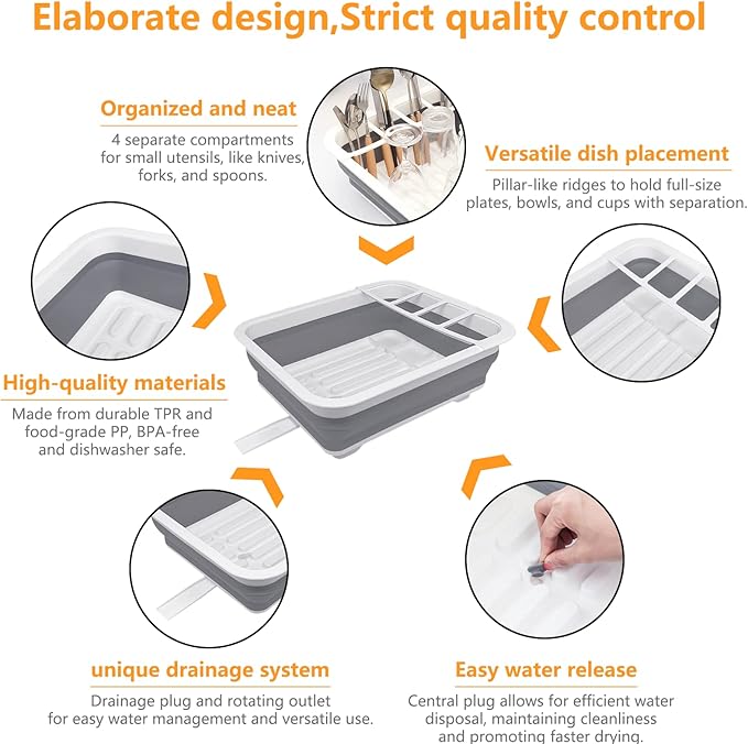 - Efficient Draining: Equipped with a drain plug and swivel spout, this dish drainer lets you control water flow and direct it to a designated area, keeping your countertops clean and dry