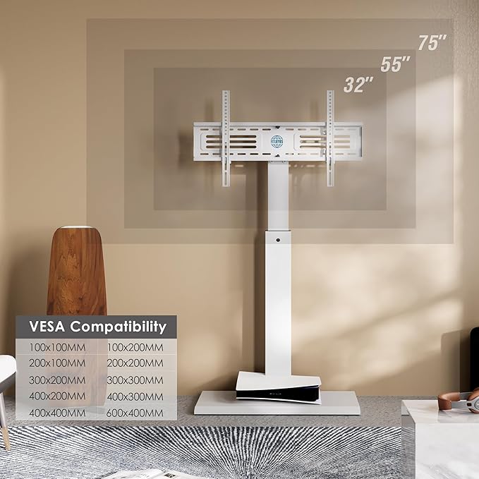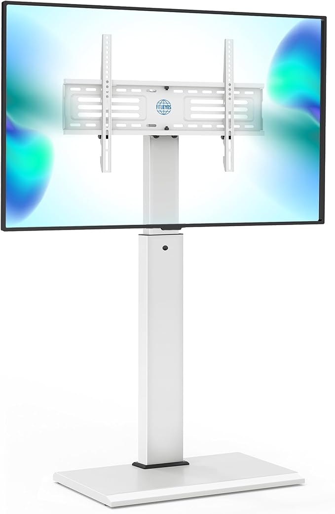 - Height Adjustment & 60° Swivel Mount: Easy to adjust the height of this 65 inch TV stand and you could swivel the TV mount 30°(max angle) left or right. FITUEYES TV stand base always ensures you a comfortable viewing angle