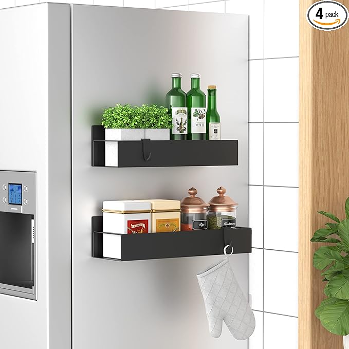 2 Pack Magnetic Spice Storage Rack Organizer for Refrigerator and Oven, Black Fridge Organizers and Storage