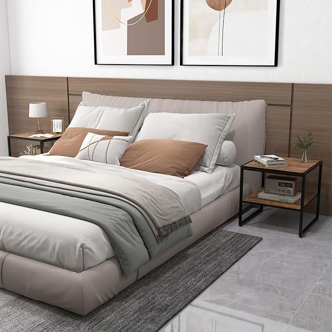 - 2-tier Shelf to Enlarge Storage: The side table set of 2 is designed with square tabletop and open shelf, which is capable of accommodating your lamp, books, decorations, etc, and keeping them organized. In addition, any daily items placed on the end table can be easily accessible.