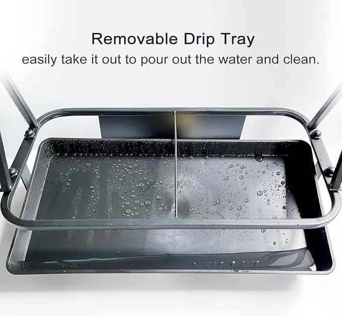 - The umbrella holder is made of iron, sturdy and stable. Four height adjustable foot screws keep for horizontal placement. Removable water-containing base tray catches the water from umbrellas, and easily to take it out to pour out the water and clean.