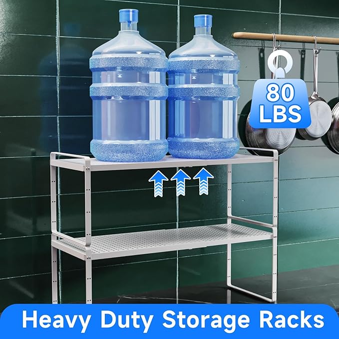 - 【Heavy-Duty Capacity】 This cabinet shelf organizer is built to last, with a durable and sturdy construction that can support up to 80 lbs of weight, making it perfect for storing even your heaviest kitchen items