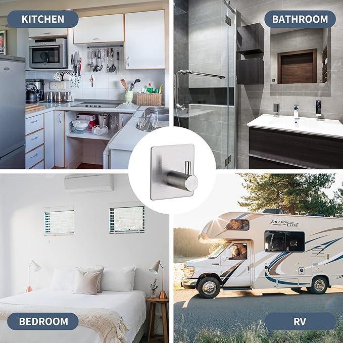 - 【 Damage-Free Hanging Hooks 】 Ideal for no-drill environments like rentals or RV, these metal sticky hooks provide a simple, no-mess solution for your hanging needs, ensuring your walls remain intact.