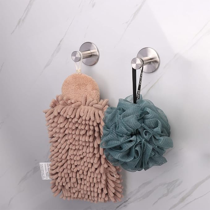 Bath Towel Hooks, 4 Pack Self Adhesive Coat Hooks, Sturdy No Drilling Robe Hook, SUS 304 Stainless Steel Heavy Duty, Wall Hooks for Bathroom Bedroom Kitchen (2 in, Brushed)