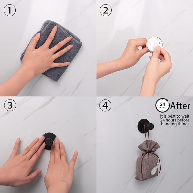 - EASY INSTALLATION: 8 pack clothes hooks are no drill needed, will not damage to your wall. Just peel off the film of the rubber pad and stick it on the smooth wall, It only takes 1 minute to complete the installation. Stick towel hook in shower room, hang and take towel becomes easy and convenient.