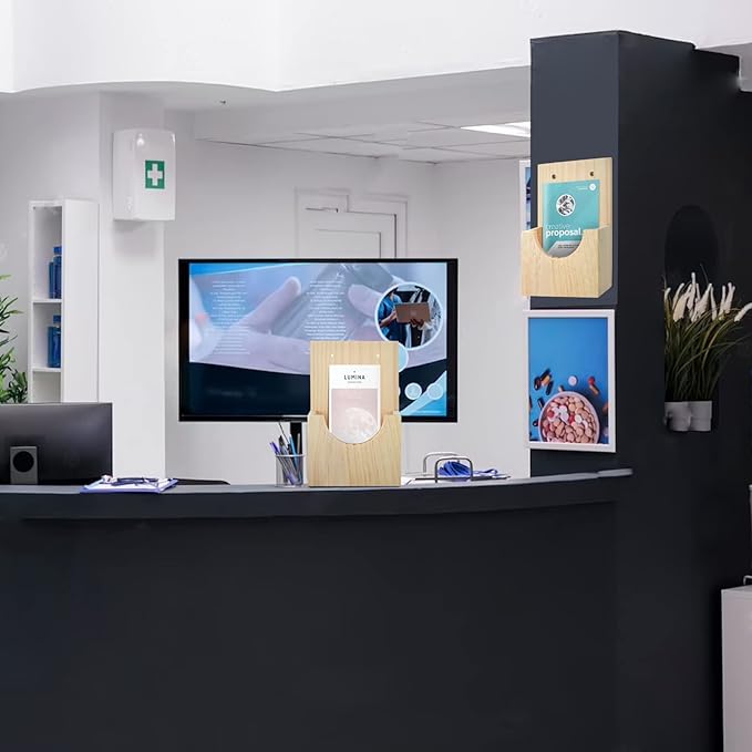 2-in-1 Wooden Wall Mount Pamphlet Holder - Hanging Display Stand for 4x6 Flyers & Trifold Brochures - Ideal for Office
