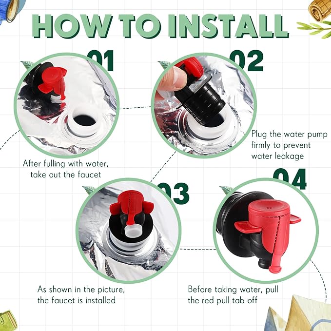 - Practical Spigot: the package includes spigots, but the spigots and the emergency water storage container are packaged separately; When you fill the water, pour the water into the container and then seal it with the tap, to give you a convenient experience