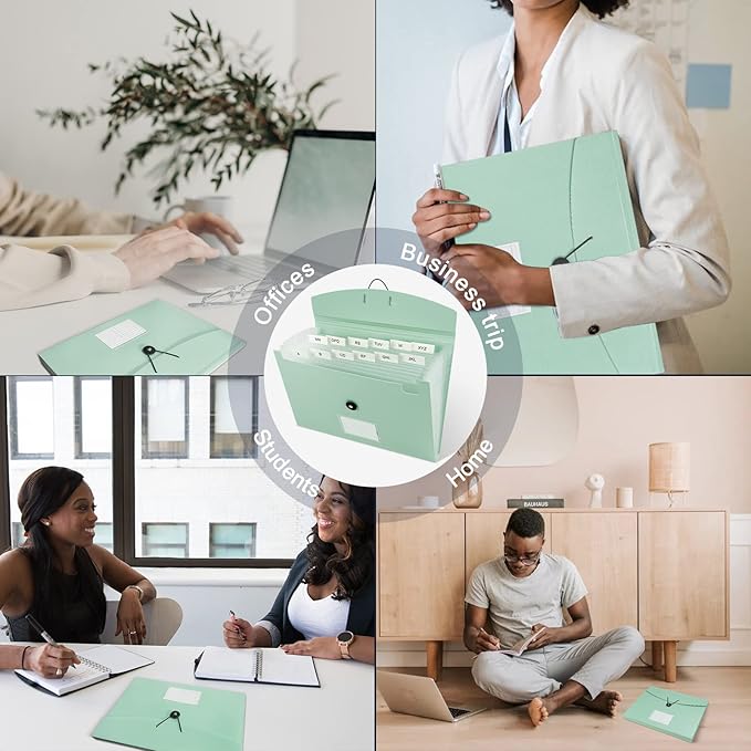 Green Expandable File Folders, Expanding Receipt Organizer, Accordion Folder File Folders, Important Document Organizer, Accordion Folder for Office/School