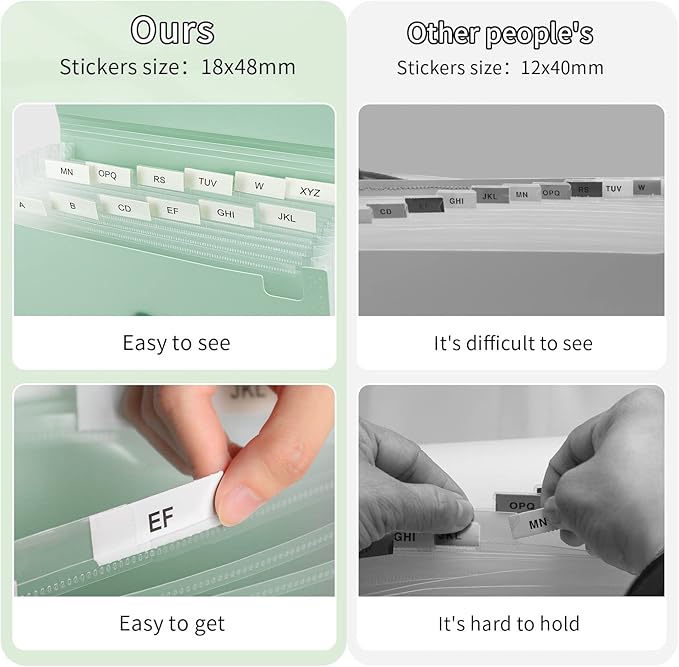 - ✍Practical Design: We've enhanced the elastic string and button closure compared to previous expanding file organizers, ensuring easier handling for users. With its 13 pockets and transparent label design, this folder offers increased security for your internal papers. It efficiently maintains the tidiness and orderliness of your files, beautifully streamlining your daily life.