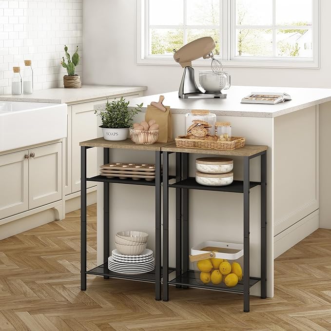 Hoctieon 2-Set 3 Tier End Table, Telephone Table Set of 2, Tall Side Table with Storage Set of 2, Small Nightstand for Small Spaces, Metal Frame, for Living Room, Bedroom, Sofa Couch, Hallway, Greige