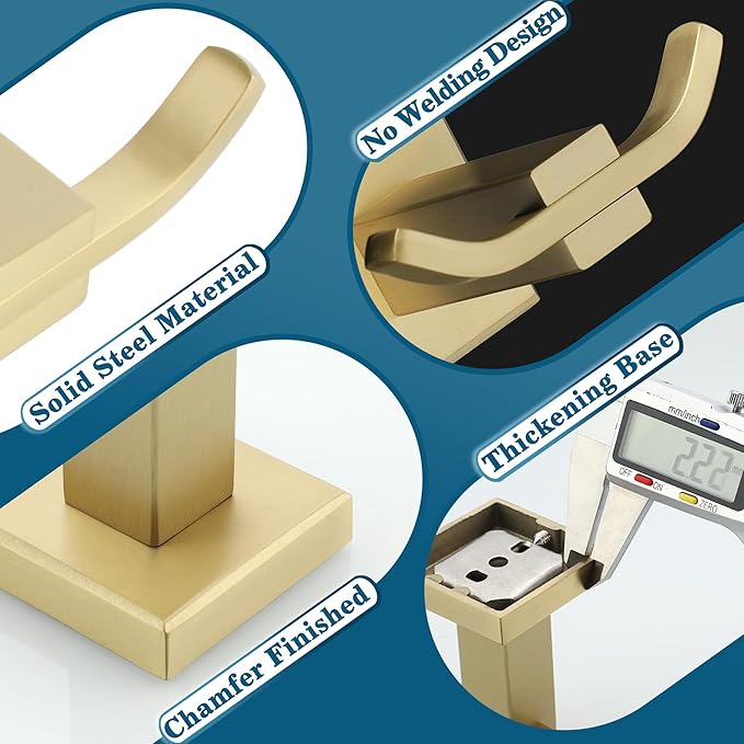 - 【Nice Gorgeous Golden】The coat hook is finished by dazzling and gorgeous gold, premium and smooth gold finish, shiny look makes it a focal point everywhere, and is also perfect for a variety of bathroom finishing styles.