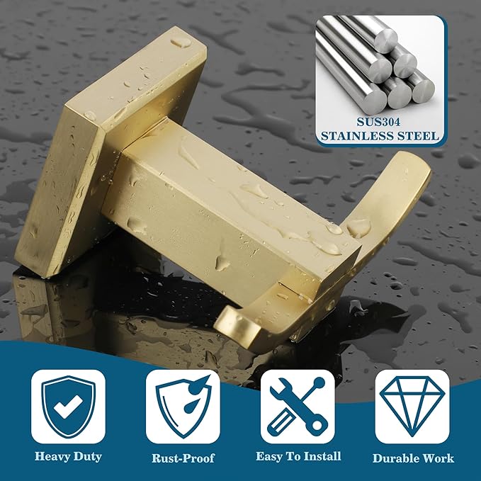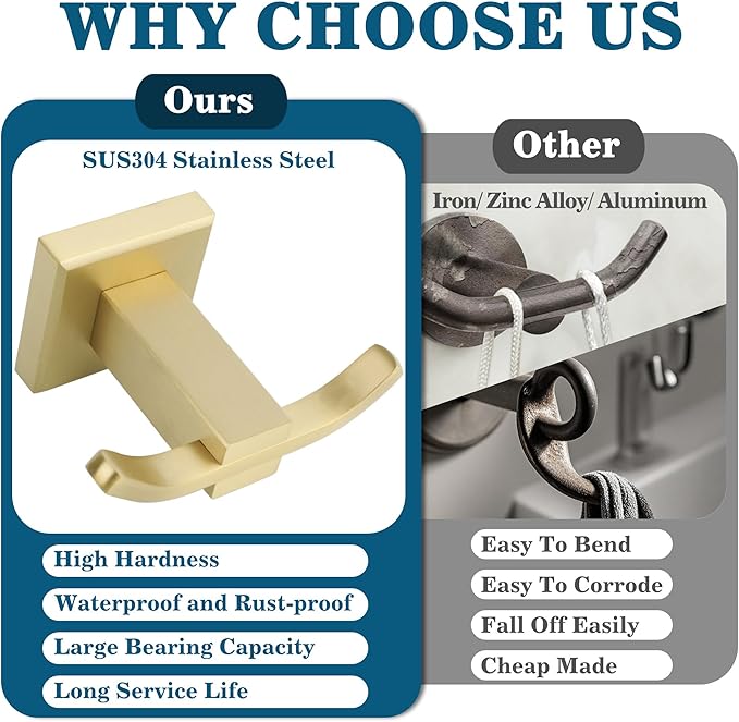 - 【Premium Quality Material】The towel hooks constructed of SUS304 stainless steel; hi-q steel material features high hardness, corrosion and rust resistance, strong and durable properties ensure long service life.