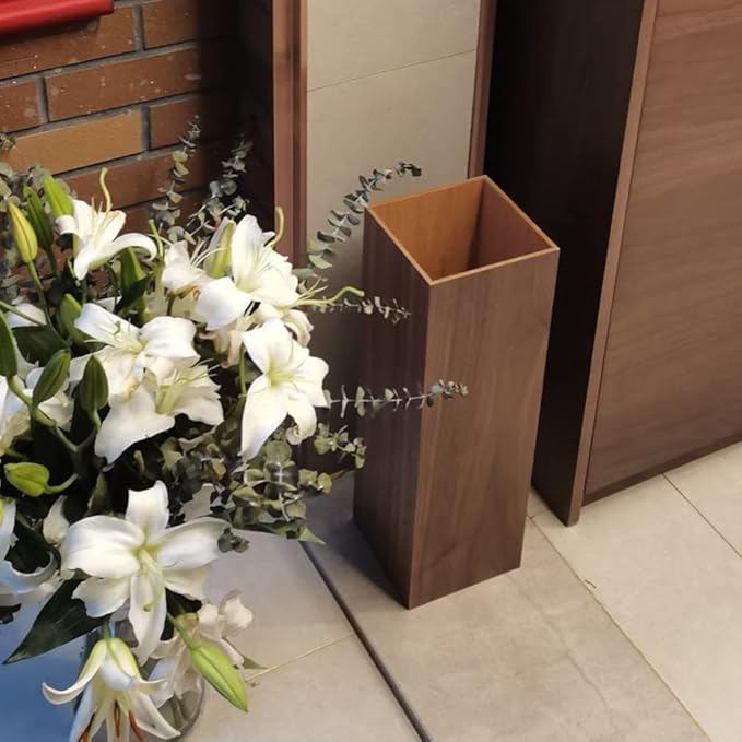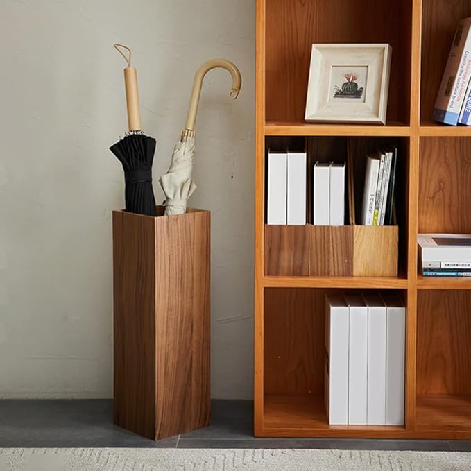 HOMSFOU Umbrella Stand Wood Umbrella Holder Farmhouse Umbrella Bucket Square Wooden Umbrella Holder Canes Walking Sticks Holder for Home Office Entryway 6.3"L x 6.3"W x 19.7"H