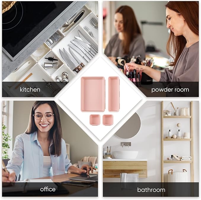 - Make Everything Organized: the desk drawer organizer tray is designed to match most drawer sizes, you can use these drawer organizers in vanity, bathroom, kitchen, office, ideal for organizing cosmetics, makeup tools, hair accessories, jewelry, pins, office supplies, craft supplies, utensils and more