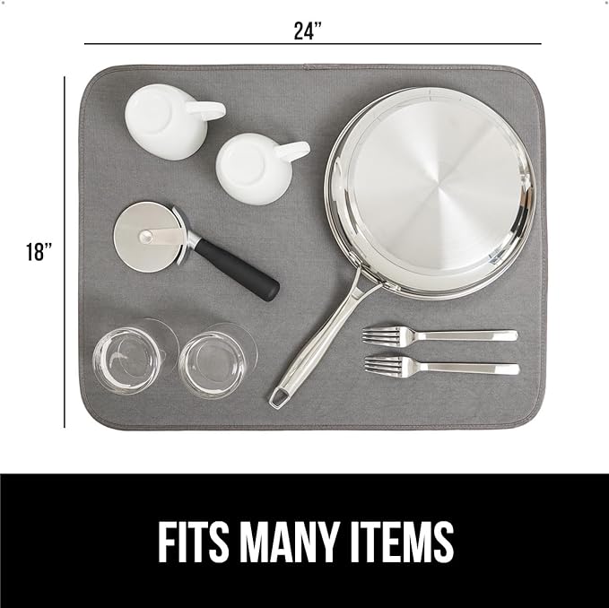 GORILLA GRIP Ultra Water Absorbent Microfiber Dish Drying Mat, 18x24, Quick Dry Thick Mesh, Slip Resistant Pad for Sink Dishes or Under Rack, Kitchen Counter Accessories, Machine Wash Mats, Gray