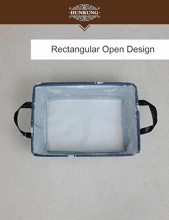 HUNRUNG Rectangle Storage Basket Cute Canvas Organizer Bin for Pet/Children Toys, Books, Clothes Perfect for Rooms/Playroom(Rec-Blue Space Astronaut)